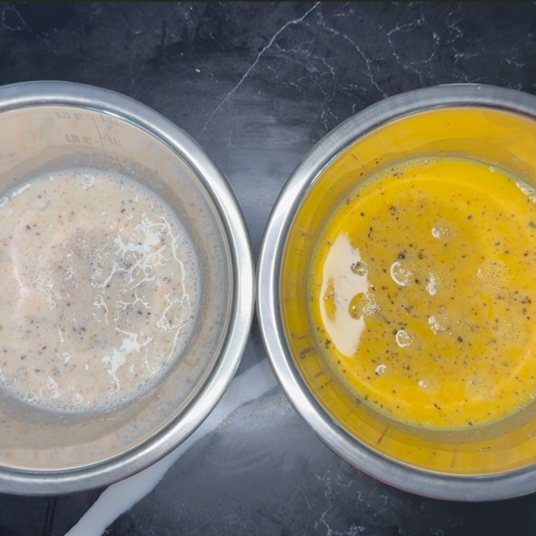 Step 2: Mix the eggs, half and half, seasonings, and shredded cheese together until well combined.