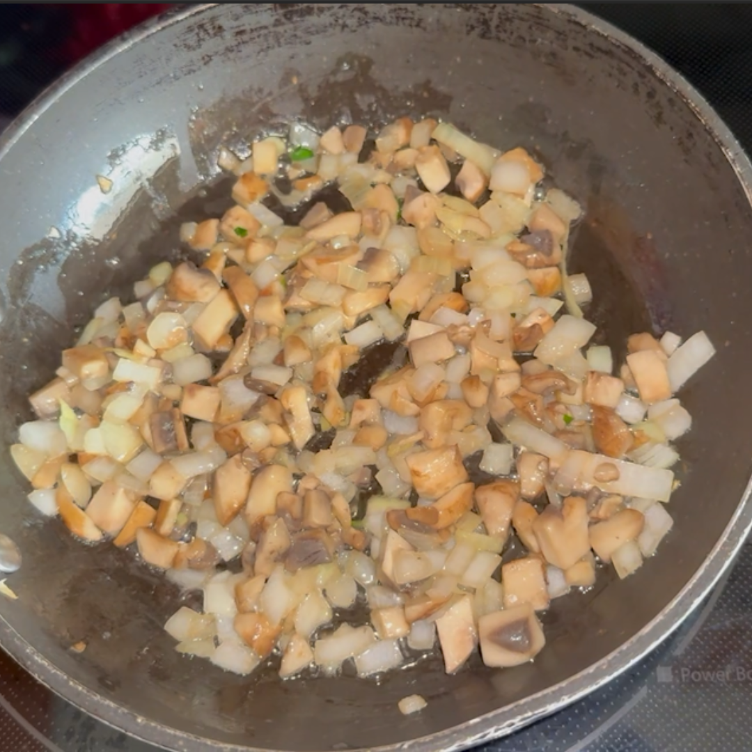 Step 3: I like to sauté my onions and mushrooms to soften them a bit so they’re not so crunchy, but that’s up to you.