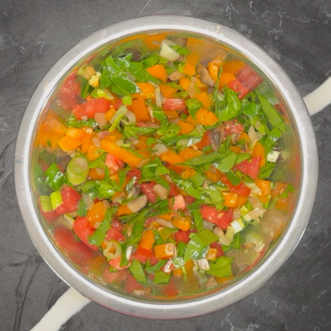 Step 4: Mix the sauteed vegetables with the other vegetables.