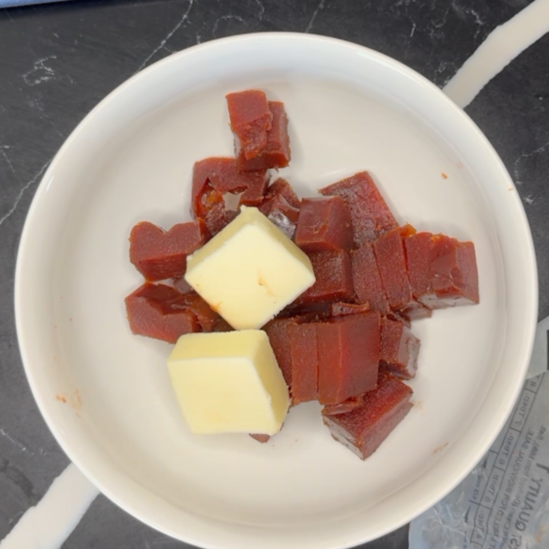 Step 2: Add the guava to a microwave safe bowl with the butter and water.
