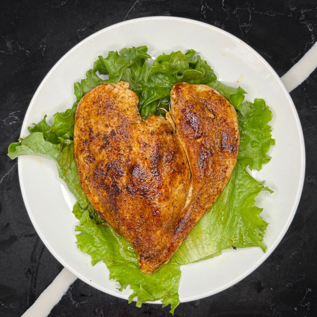 Heart shaped pan seared chicken breasts! This protein packed hearty chicken is perfect for salads or as an entree!