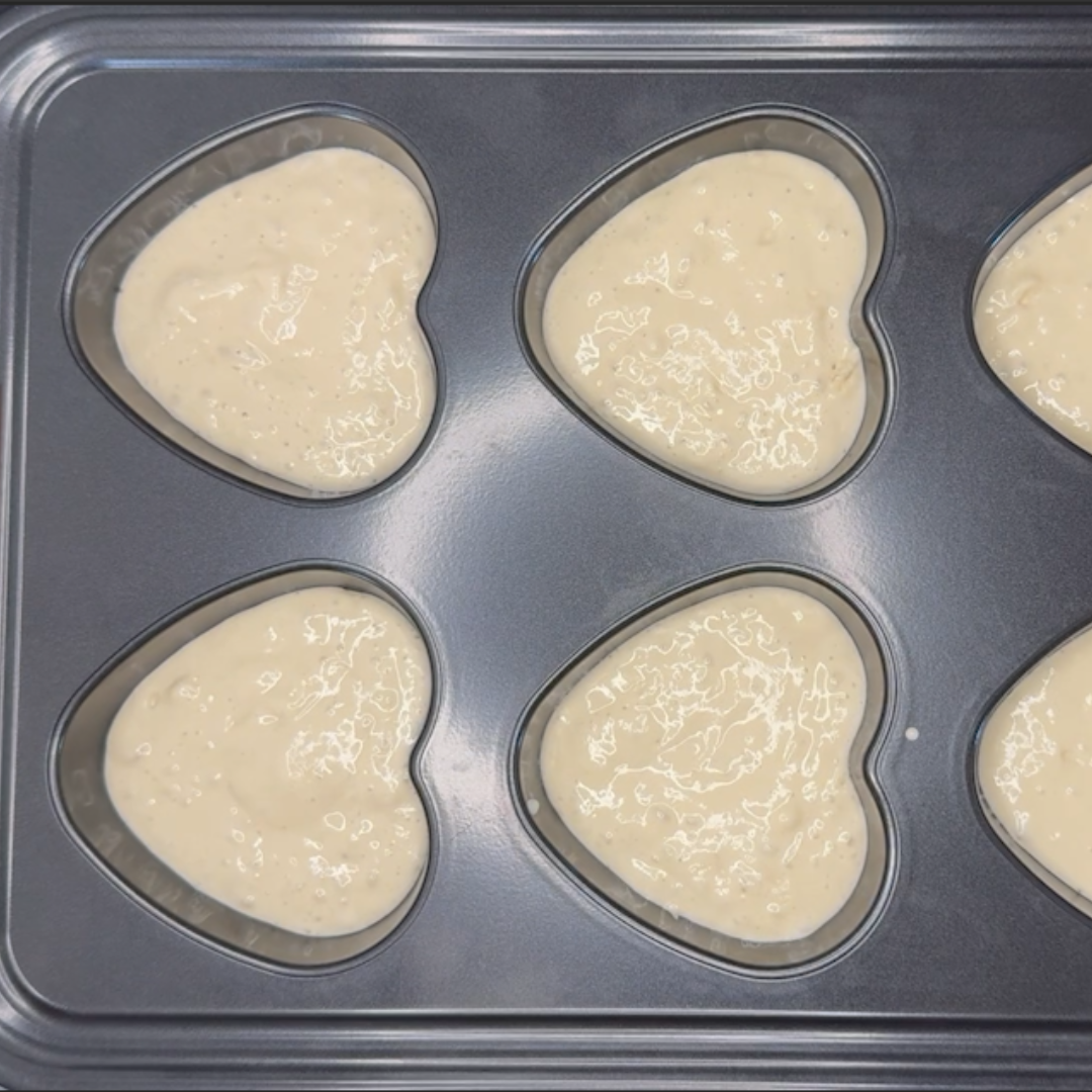 Step 7: In a nonstick muffin pan, spoon just enough pancake mix to cover the bottom of the well.