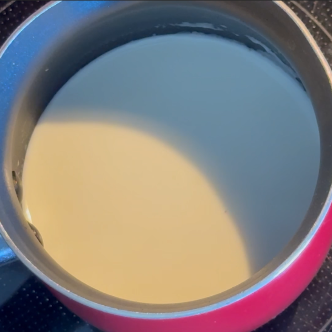 Step 2: Heat the cream until its hot enough to steam, but not boiling. For Stove: bring the cream up to a light simmer. For Microwave: Heat in 30 second increments until the cream is hot.