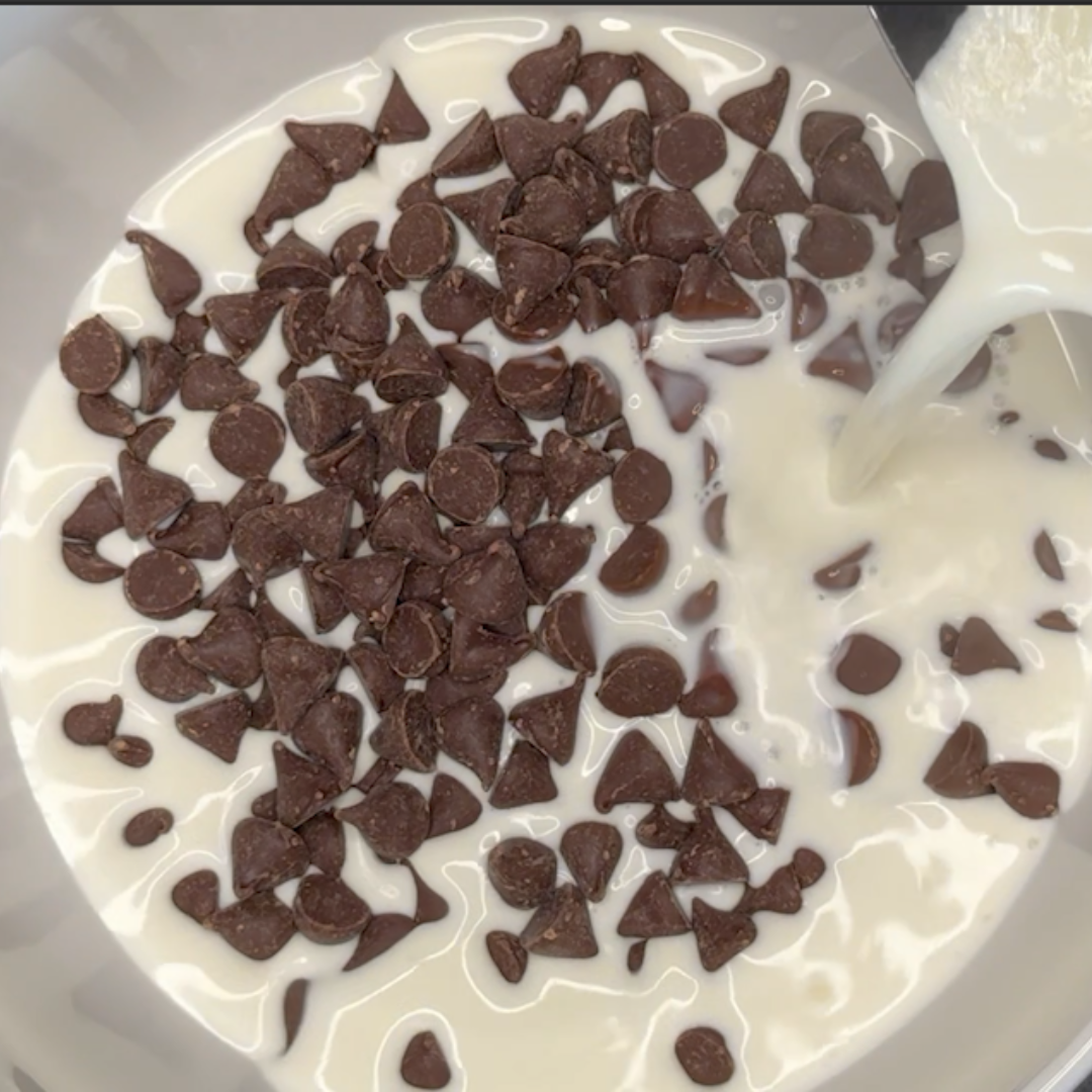 Step 3: Pour the cream over the chocolate.
