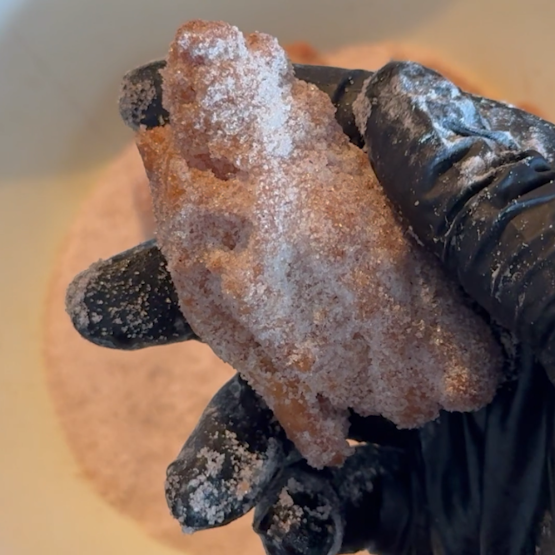 Step 9: Drop hot into the cinnamon sugar and toss to coat.